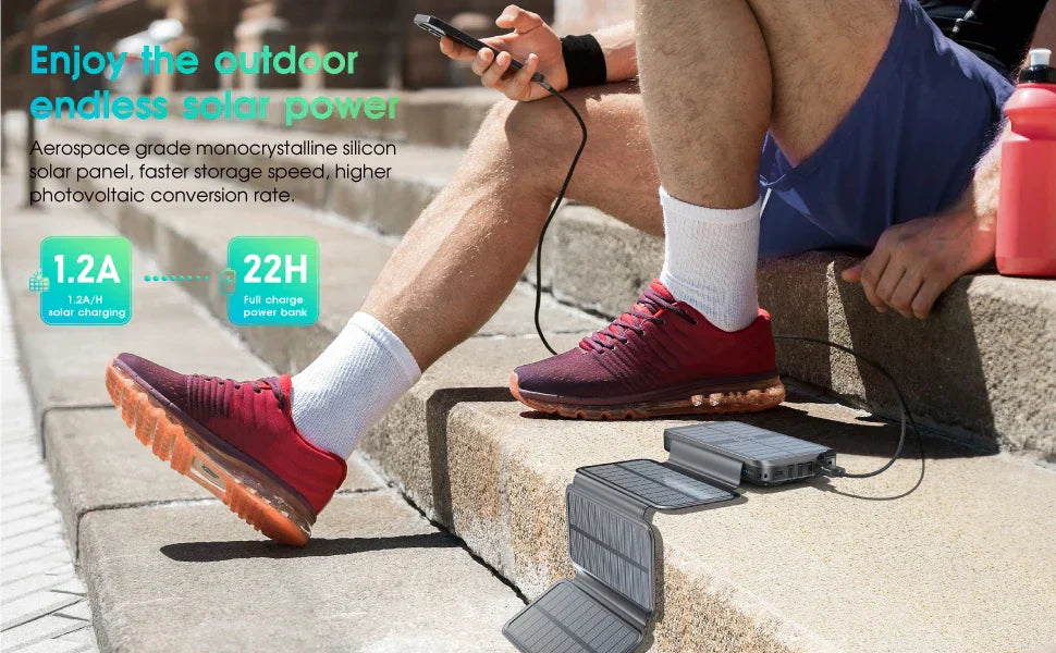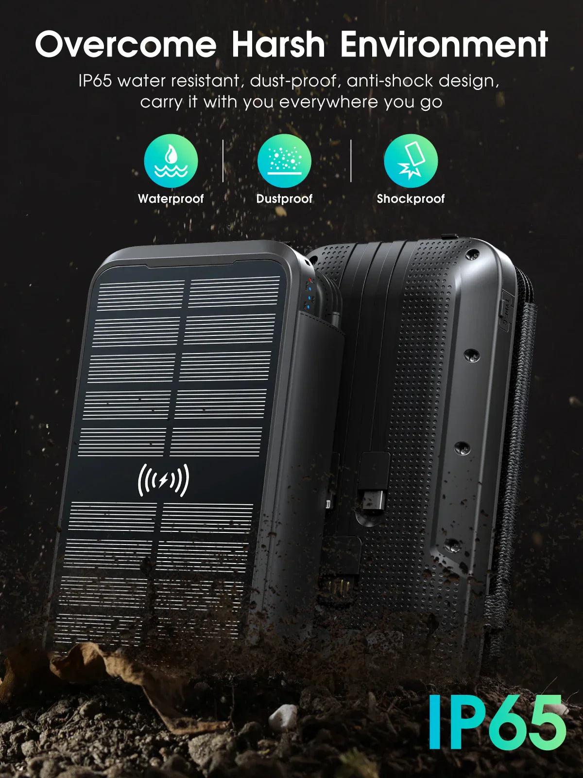 Smart Features: • Digital Power Display • High-Brightness LED Flashlight • All-in-One Charging Solution • Waterproof Protection • Foldable Solar Panel Design