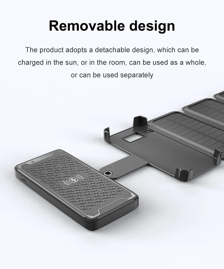 RadiantGrid Pro Solar Power Bank Features & Benefits: • Solar-Powered Sustainability: Built-in solar charging for reliable outdoor power • Universal Compatibility: Supports QC 2.0/3.0 and PD fast charging protocols • Versatile Emergency Lighting: SOS mode, flash, and steady lighting options • Business-Ready Design: Detachable configuration for lightweight portability • All-Weather Reliability: Durable waterproof construction