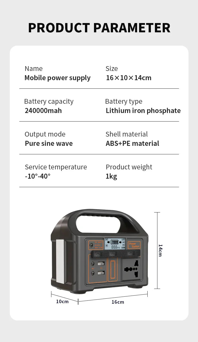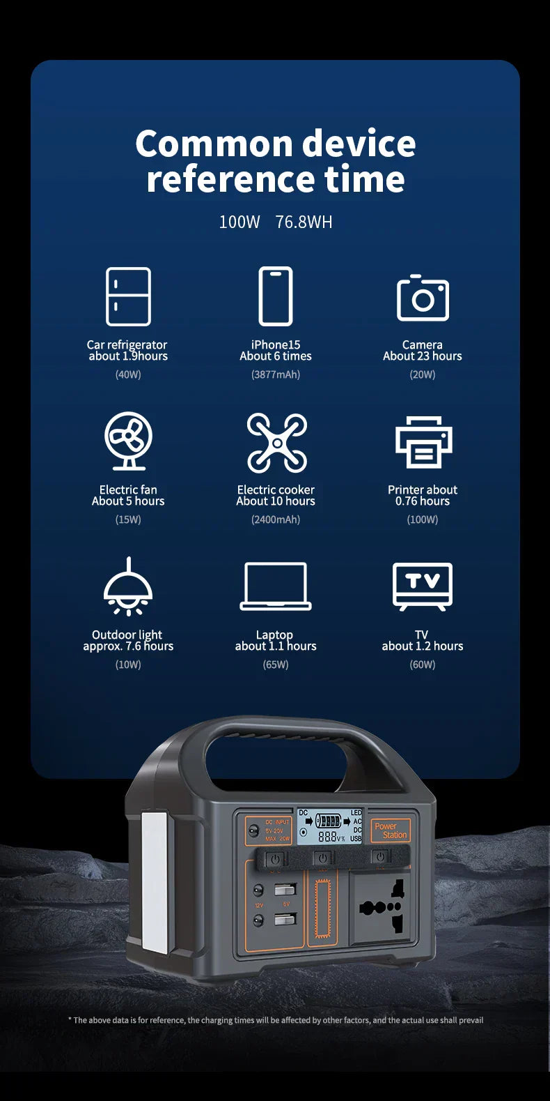 Package Includes: • Portable Power Station • User Manual • Charging Cables