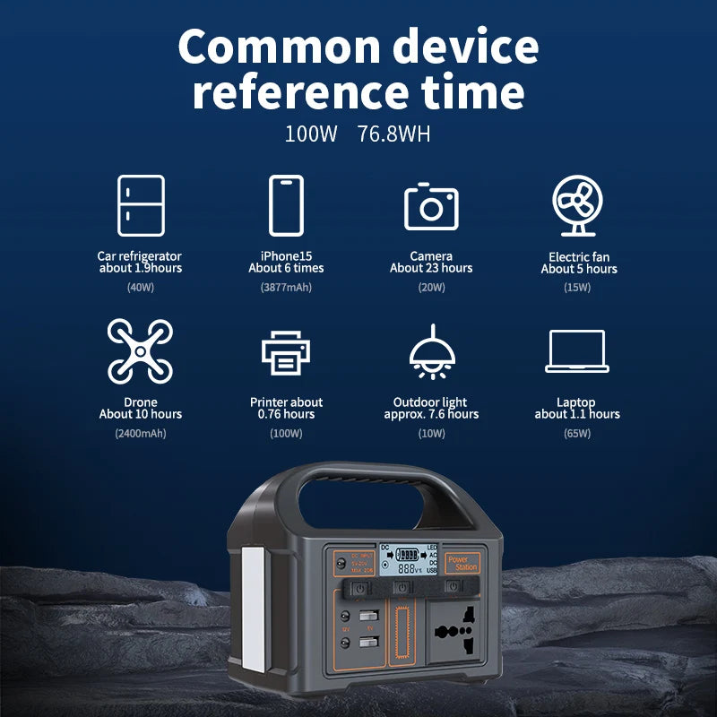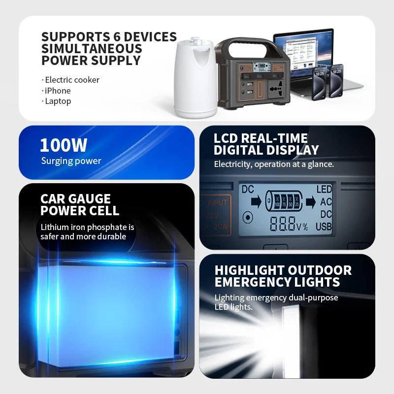 The RadiantGrid EG012 combines lightweight portability with powerful performance in a versatile power station. This 100W unit features advanced LiFePO4 battery technology and multiple charging options for reliable power anywhere.