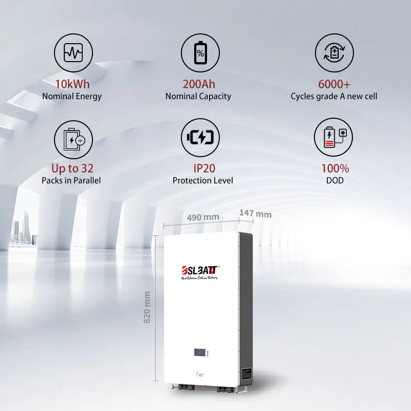 Key Technical Specifications: • Capacity: 10.24kWh (expandable to 307.2kWh) • Voltage: 48V (51.2V nominal) • Current: 100A continuous, 150A peak • Cycle Life: >6,000 cycles @80% DOD • Efficiency: 99% • Dimensions: 820 x 490 x 14.7mm • Weight: 90kg • Protection Rating: IP54 • Warranty: 5/10 yearsAdvanced Features: • Smart Battery Management • Multiple Communication Ports (RS485, RS232, CAN) • Built-in Display Screen • Hybrid Grid Compatible • Wall-Mount Design • UL Certified Safety Standards • A+ Grade Cell Technology • 16-Cell LiFePO4 Configuration