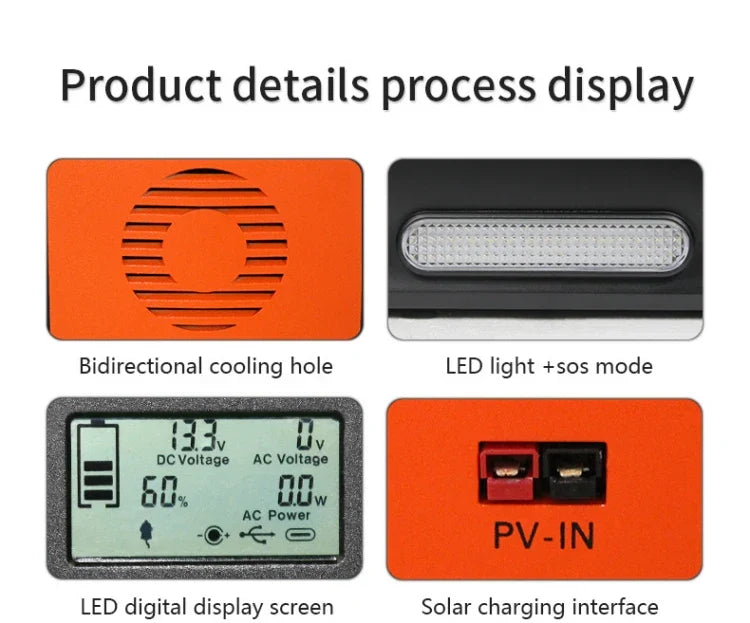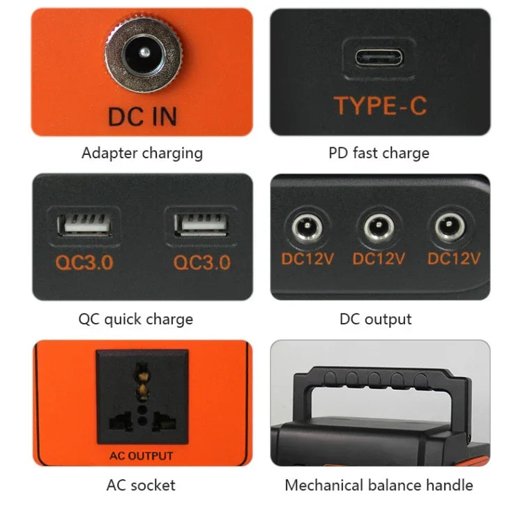 Charging Capabilities: • Solar Charging: 16.8V25V/8A • AC Adapter: 220V/110V to 16.8V/4A8A • Multiple Input Options: