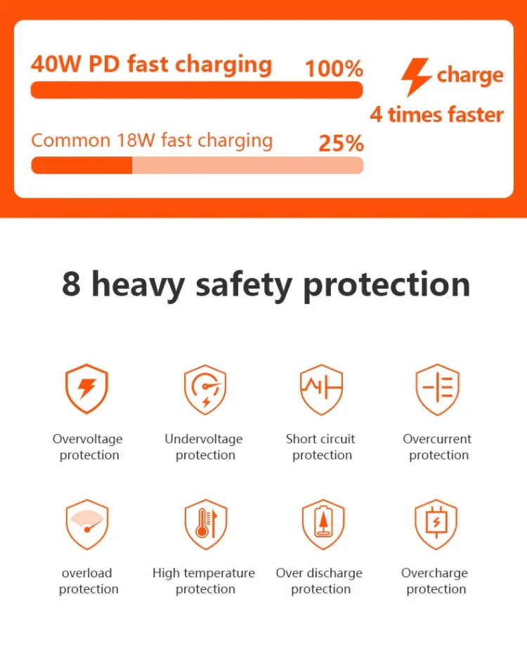 • Type-C PD 60W • 5V/3A • 9V/3A • 12V/3A • 15V/3A • 20V/3A • DC Outputs: