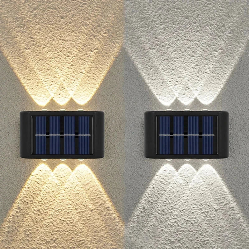 Enhance your outdoor space with our energy-efficient 6LED Solar Lights wall sconce, featuring elegant up and down lighting design. Perfect for creating ambient illumination for gardens, balconies, terraces, and pathways.