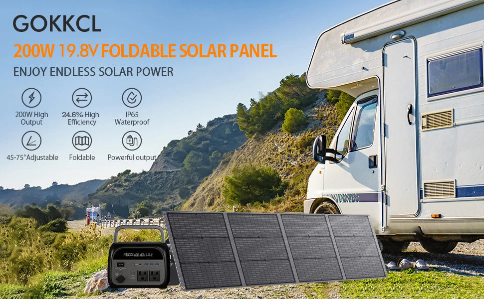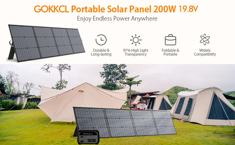 200W foldable portable solar panel with IP65 waterproof rating for camping and off-grid use