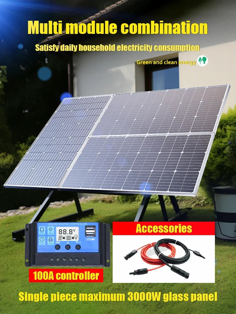 RadiantGrid GlassPro 3000W/6kW Solar Panel Kit - 21.8% Efficient Monocrystalline System for Off-Grid Applications"