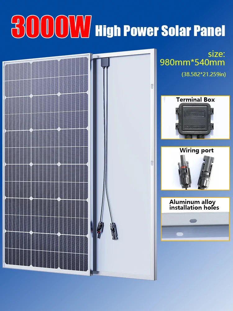 RadiantGrid Pro 3000W Solar Panel - 21.8% Efficient Monocrystalline System with PWM Controller"