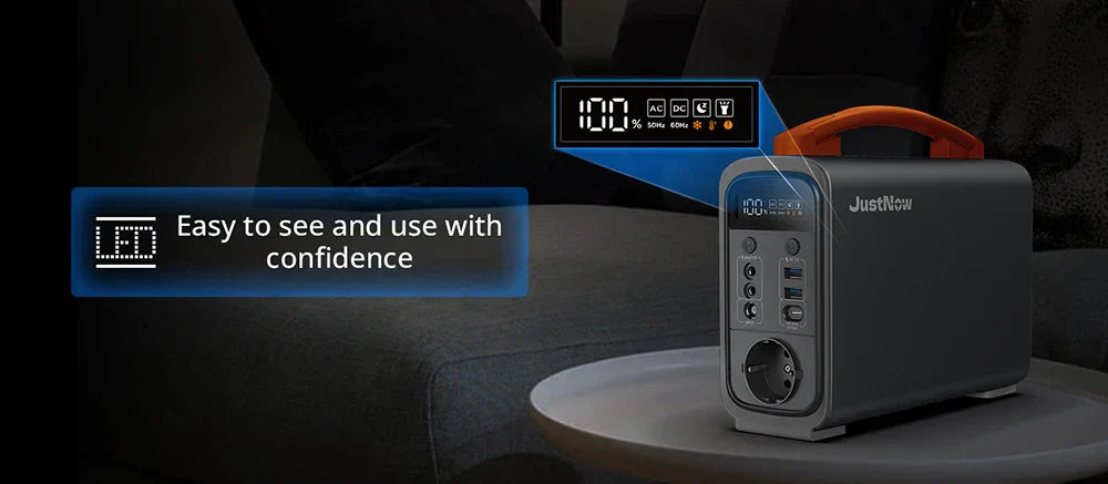 With a maximum energy output of 320Wh, the JustNow 240W portable power station can power all important things at the same time. The status of the energy station can be read at a glance on the LCD so that you are well-equipped for your outdoor camping or caravanning trip.