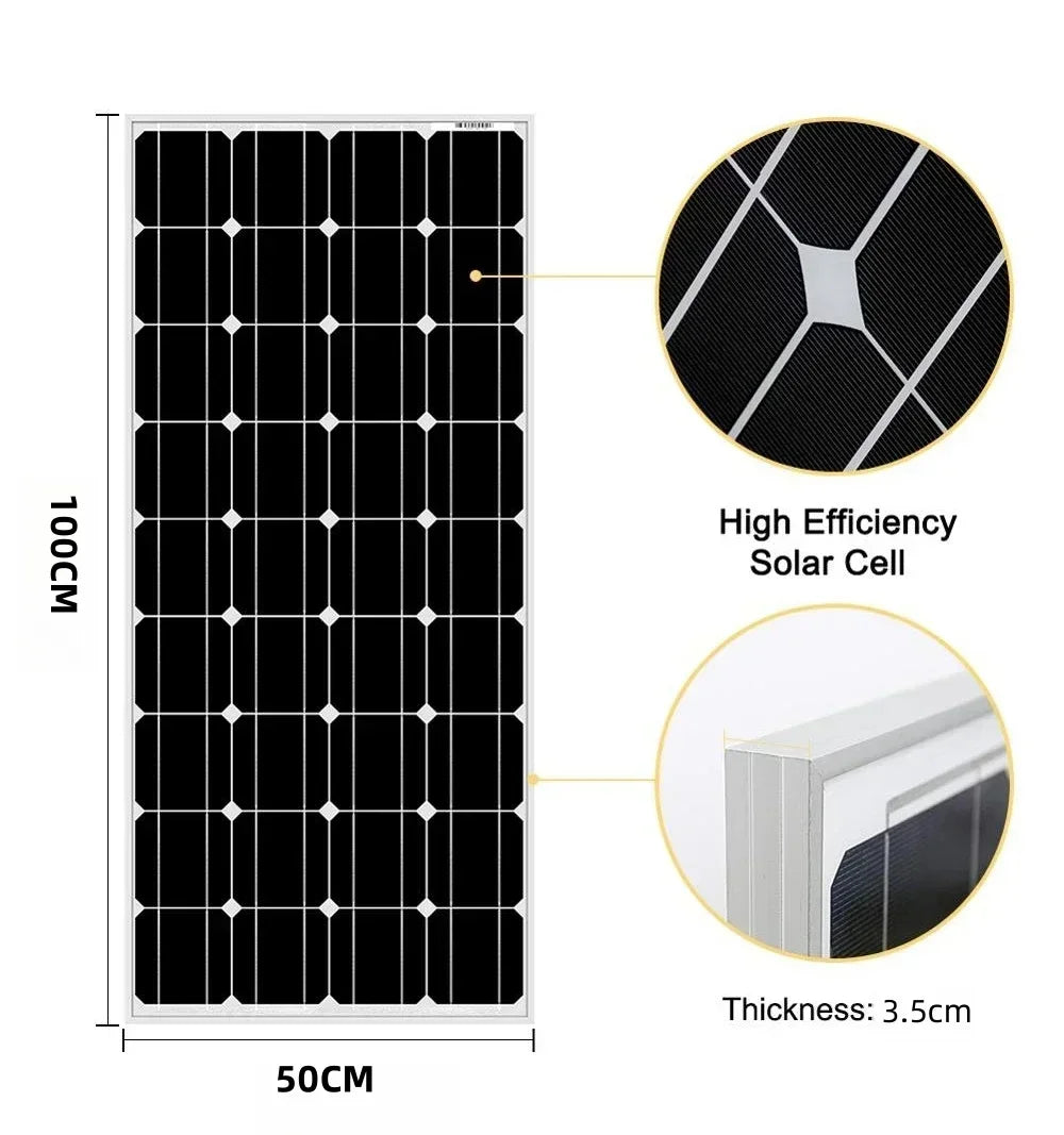 Technical Specifications: • Power Output: 3000W • Efficiency Rate: 21.8% • Cell Count: 30 • Panel Count: 13 • Dimensions: 100 x 50 x 3.5cm • Package Size: 105 x 58 x 5.5cm • Material: Monocrystalline Silicon